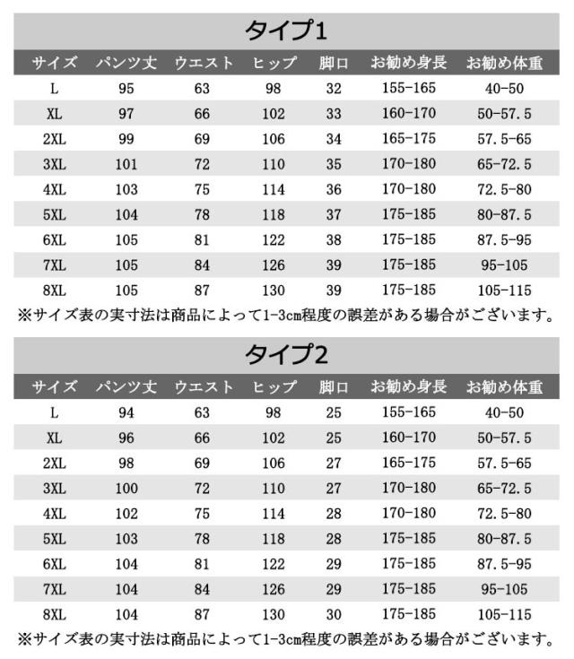 | サイズ | L XL 2XL 3XL 4XL 5XL 6XL 7XL 8XL |
