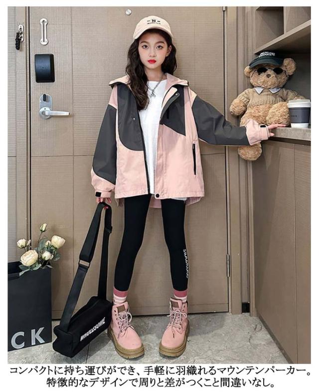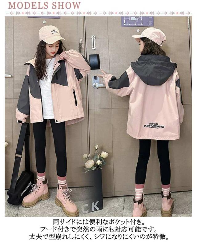 防風 キッズ 130 子供服 ウィンドブレーカー 薄手 スタジャン トップス マウンテンパーカー 春物 女の子 春コート アウター 運動着 ジャケット 切り替え お洒落 ブルゾン ガールズ ジャンパー カジュアル ジップアップ 120 マウンテンパーカー 140 150 160 170