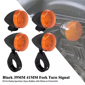 4x 39mm 41mm ブラック フォーク クランプ フロント リア LED ランプ (アンバー レンズ付き) ターンシグナルライト 4x 39mm 41mm Black Fork Clamp Front Rear LED Lamp w/Amber Lens Turn Signal Light