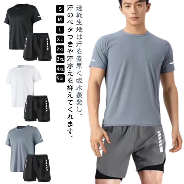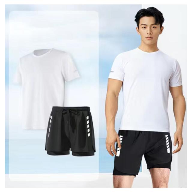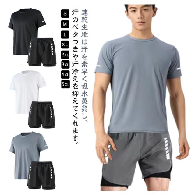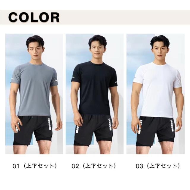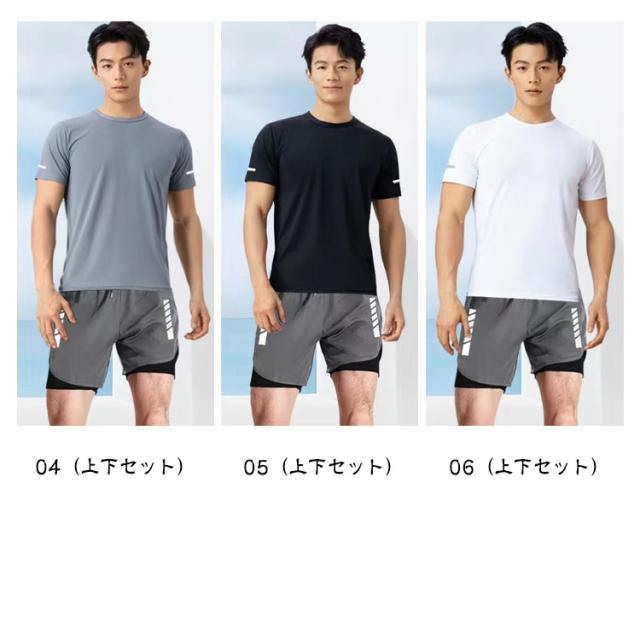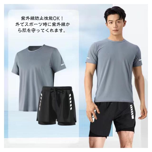 ラッシュガード 水着 男の子 海水パンツ フィットネス ハーフパンツ Tシャツ フィットネス水着 水着 2点セット 水陸両用 メンズ サーフパンツ セパレート 速乾 UVカット 体型カバー 男性 半袖 高校生 パパ水着 ビーチ 大人 スポーツウェア 黒 白 灰