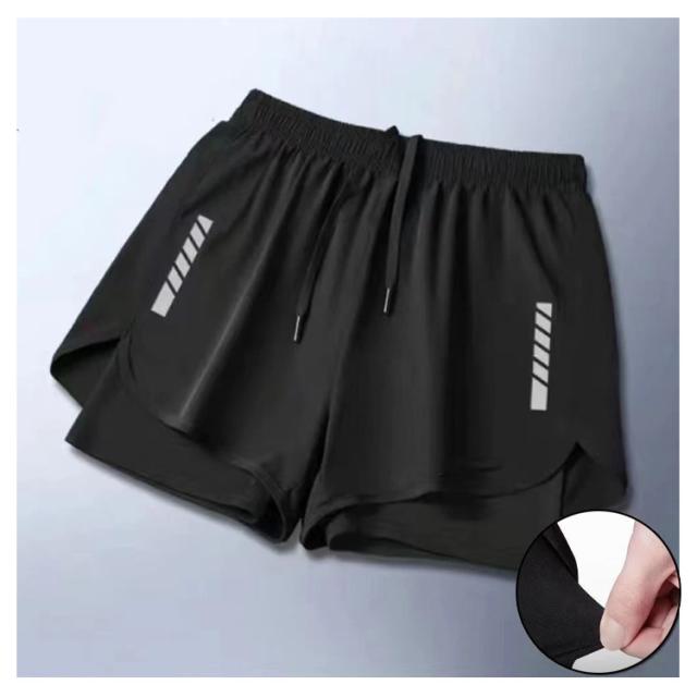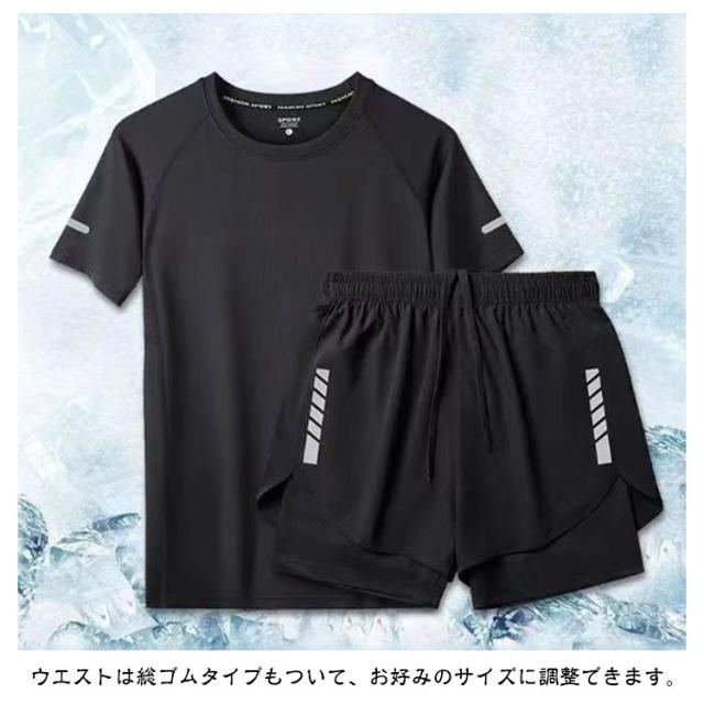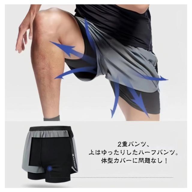 | 速乾生地は汗を素早く吸水蒸発し、汗のベタつきや汗冷えを抑えてくれます。 紫外線防止性能OK!外でスポーツ時に紫外線から肌を守ってくれます。 2重パンツ、上はゆったりしたハーフパンツ。体型カバーに問題なし! ウエストは総ゴムタイプもついて、お好みのサイズに調整できます。 | |