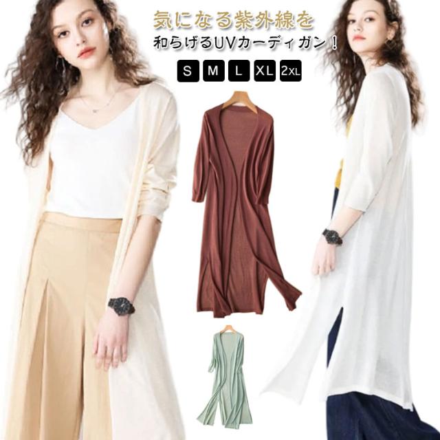 UVカット 薄手 レディース 羽織り 長袖 UV対策 ロングカーディガン トップス UV対策 日焼け防止 ロング丈 紫外線対策 カーディガン 通勤 洗える ゆったり ニットカーディガン アウター オフィス カジュアル 春 夏 秋 冷房対策