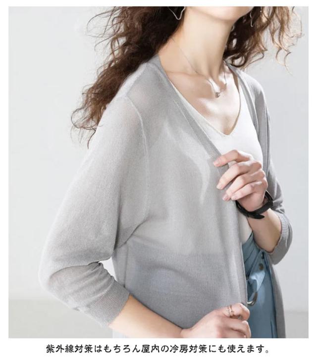 | 気になる紫外線を和らげるUVカーディガン! 軽やかな羽織心地は夏にもぴったり。 紫外線対策はもちろん屋内の冷房対策にも使えます。 | |