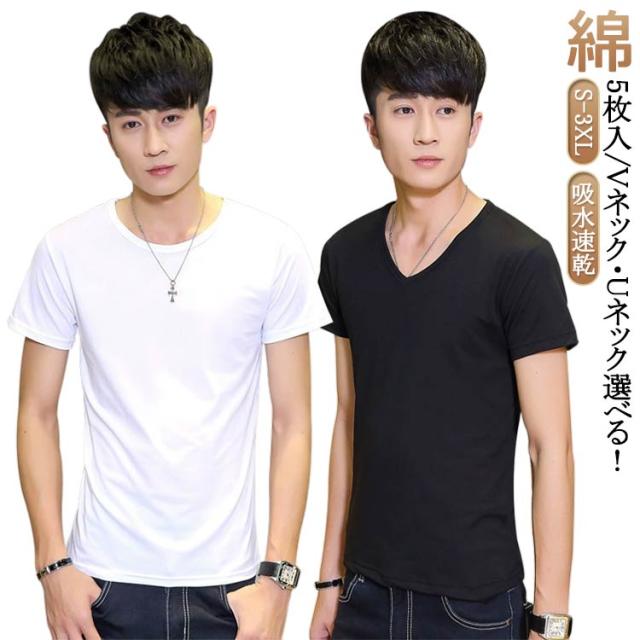 オフィス メンズ Vネック 5枚セット 綿 Uネック 半袖 クルーネック アンダーシャツ 丸首 大きいサイズ 男性用 下着 肌着 5枚セット インナーシャツ 白 黒 無地 定番 シンプル 紳士 仕事 tシャツ インナーウェア カットソー 吸水速乾