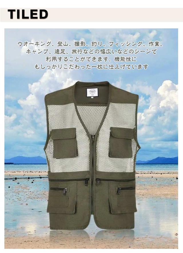 ベスト メッシュベスト メンズ フィッシング ベスト ベスト ノースリーブ メッシュベスト アウトドア お釣りベスト 薄手 お釣り 夏用 通気性 軽量 多機能ベスト 撮影 作業用 登山 キャンプ 遠足 旅行 多ポケット 大きいサイズ カジュアル