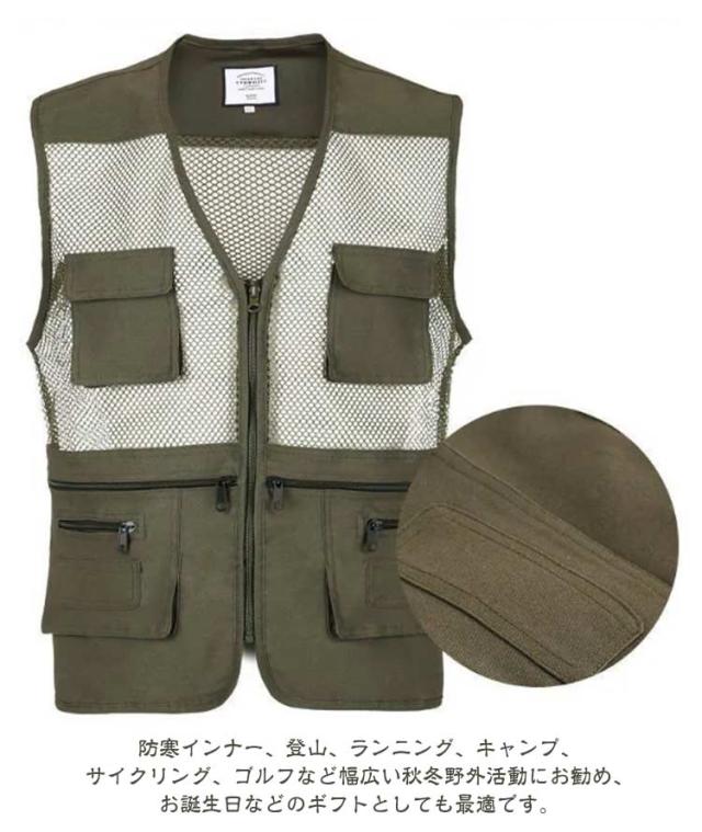 | 撮影、釣り、キャンプは勿論、旅行や休日も気軽に着用できるアウトドアベストです。 ポケット深みがあり、釣りの大好きな方、カメラマンの方など、大容量のメインポケットを装備しており、小物を収納しておくのに便利です ウオーキング、登山、撮影、釣り、フィッシング、作業、キャンプ、遠足、旅行などの幅広いなどのシーンで利用することができます。機能性にもしっかりこだわった一枚に仕上げています 防寒インナー、登山、ランニング、キャンプ、サイクリング、ゴルフなど幅広い秋冬野外活動にお勧め、お誕生日などのギフトとしても最適です。 | |