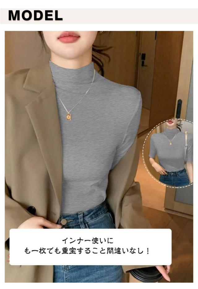 | デイリー使いにもピッタリなハイネック5分袖Tシャツ。 体型ラインを拾いにくく、メリハリのあるシルエットに仕上げてくれます。 インナー使いにも一枚でも重宝すること間違いなし! 通気性に優れた生地でさらっと快適! 普段着から通勤まで、様々なシーンで活躍できるアイテム。 | |