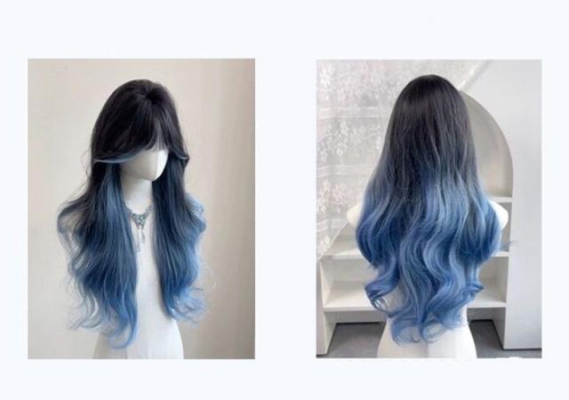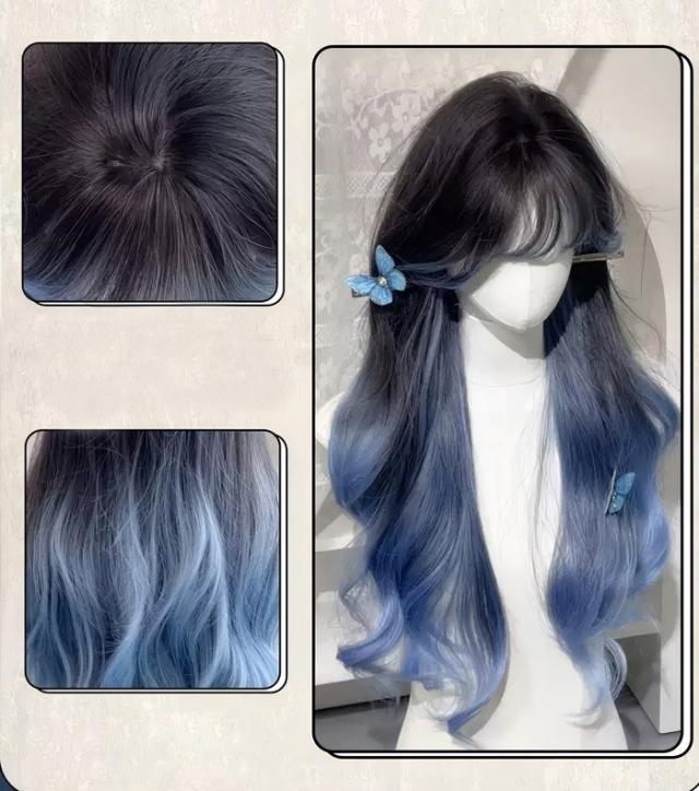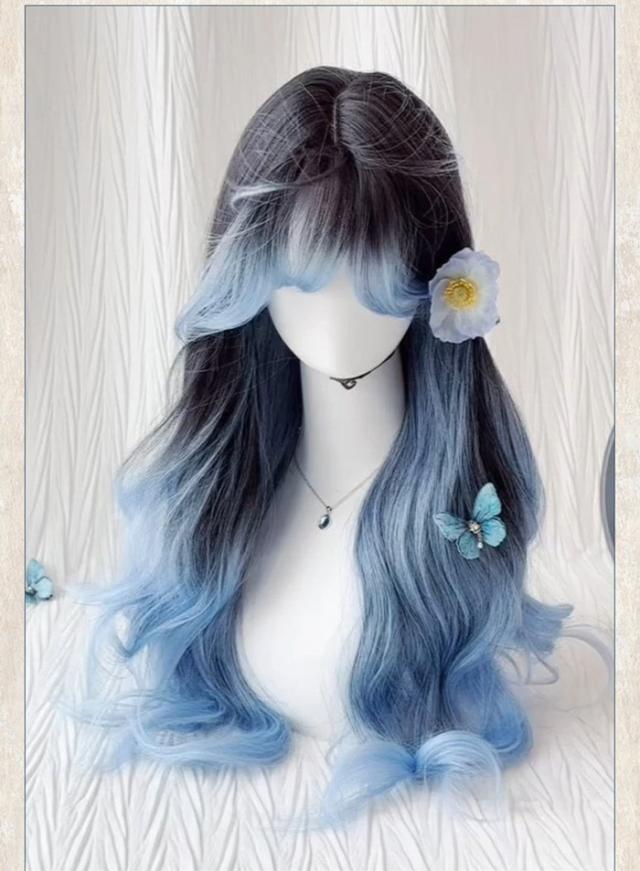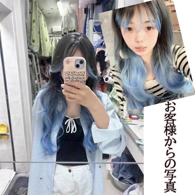 ウィッグ フルウィッグ 長髪 ロング 巻き髪 ロングウィッグ ぱっつん前髪 ロリータ lolita 前髪あり ハロウィン 原宿風 韓国風 かつら コスプレ 可愛い コスチューム 仮装 大人用 普段使い ブルー ブラック 文化祭 イベント 学園祭 演劇 舞台 学芸会 dp003x0x0zu