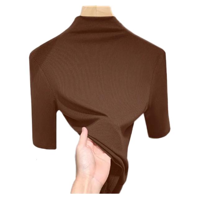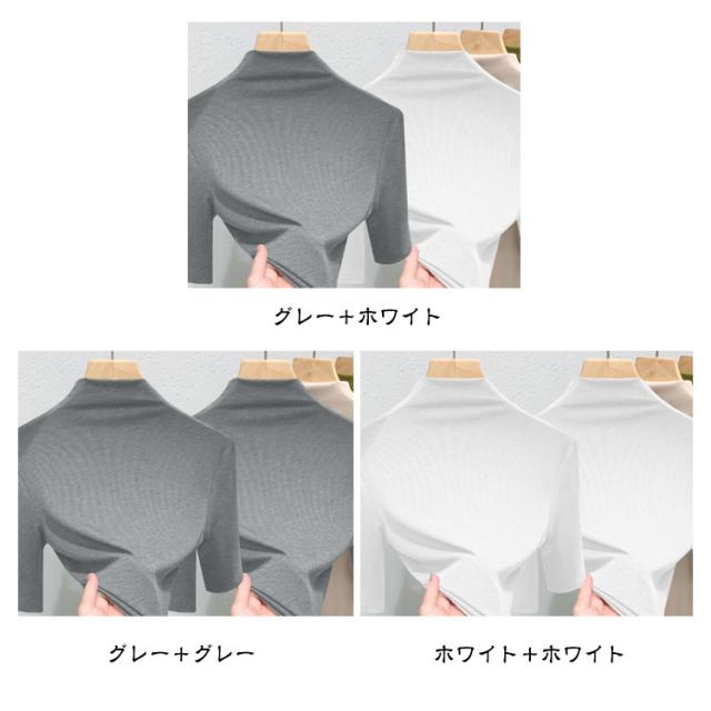 インナー tシャツ 夏 タートルネック カットソー 5分袖 リブ 半袖tシャツ ハイネック Tシャツ レディース 2枚セット トップス ハイネックtシャツ 日焼け対策 伸縮性 大きいサイズ 無地 おしゃれ 五分袖 春 2枚セット 秋 シンプル カジュアル 大きいサイズ