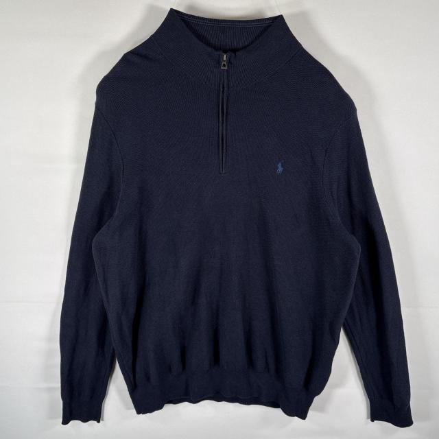 古着 ポロ・ラルフローレン POLO RALPH LAUREN サーマルトレーナー ハーフジップ ワンポイントロゴ 大きいサイズ 3XLT ダークネイビー系