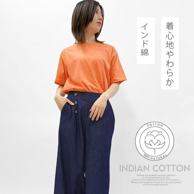 Tシャツ 半袖Tシャツ 綿100%Tシャツ カットソー インナー インド綿 丸首 クルーネック 吸水性 通気性 無地 レディース 男女兼用 敏感肌 低刺激 やわらかい シンプル 送料無料