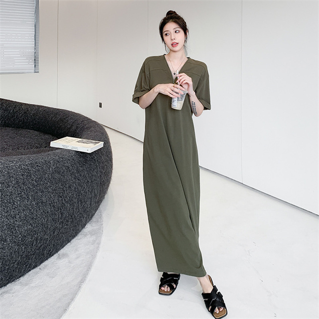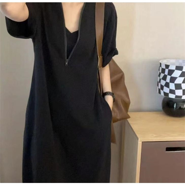 ワンピース レディース 40代 半袖ワンピース 春夏 きれいめ マキシ丈ワンピース 黒 着痩せ 体型カバー 30代 50代