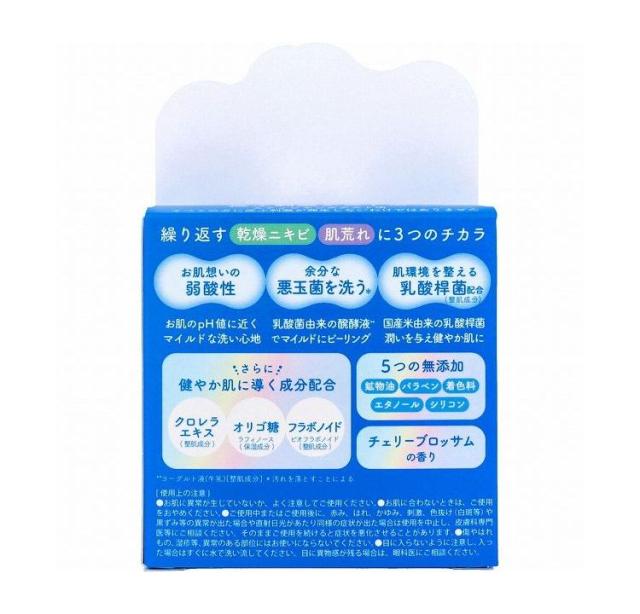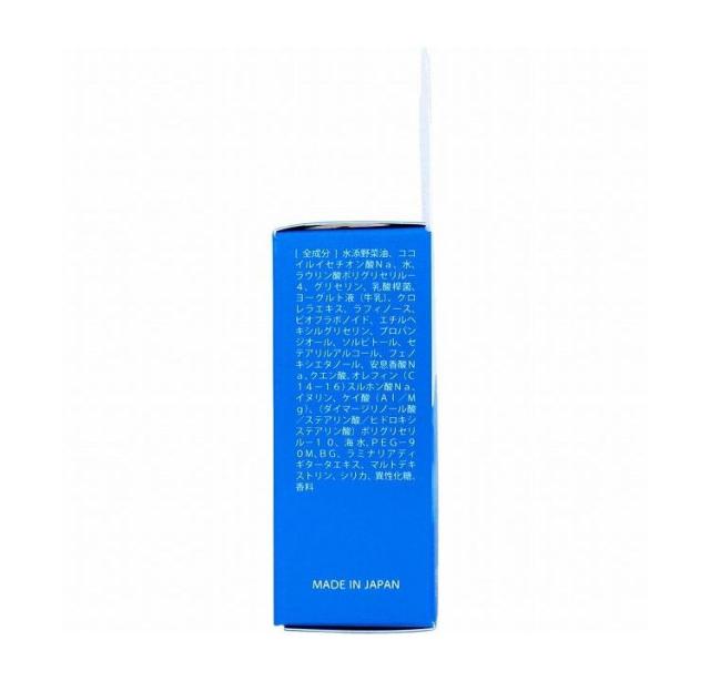 全成分:水添野菜油、ココイルイセチオン酸Na、水、ラウリン酸ポリグリセリル-4、グリセリン、乳酸桿菌、ヨーグルト液(牛乳)、クロレラエキス、ラフィノース、ビオフラボノイド、エチルヘキシルグリセリン、プロパンジオール、ソルビトール、セテアリルアルコール、フェノキシエタノール、安息香酸Na、クエン酸、オレフィン(C14-16)スルホン酸Na、イヌリン、ケイ酸(AI/Mg)、(ダイマージリノール酸/ステアリン酸/ヒドロキシステアリン酸)ポリグリセリル-10、海水、PEG-90M、BG、ラミナリアディギタータエキス、マルトデキストリン、シリカ、異性化糖、香料