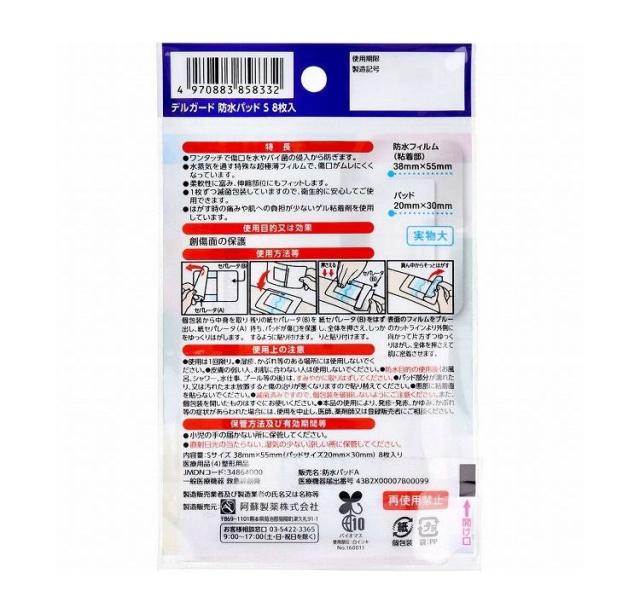 Sサイズ:パッド 20mm×30mm、防水フィルム(粘着部) 38mm×55mm