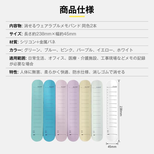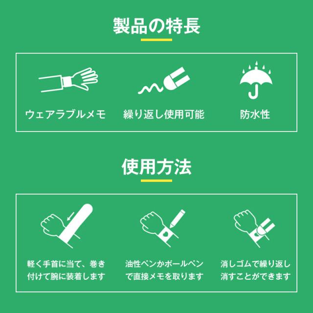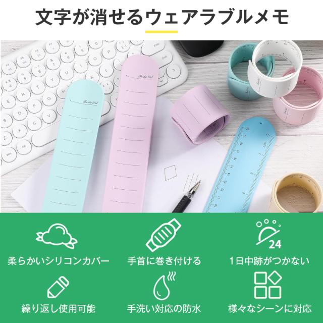 メモ帳 バンド 2本 ウェアラブルメモ ボールペン 消せる リストバンド 腕に巻き付ける シリコン 柔らか 定規 防水 再利用可 ノート 看護 介護 工事 物忘れ防止