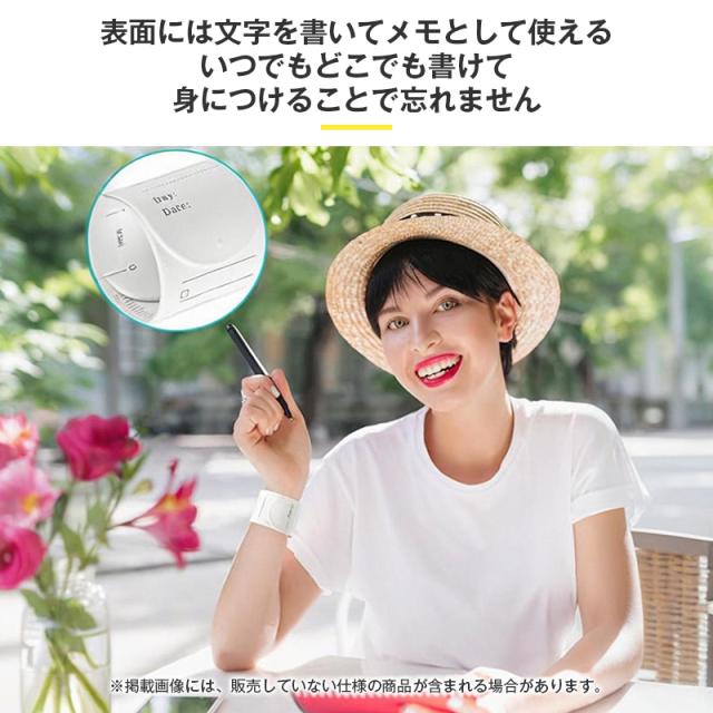 リストバンドを腕に巻くだけ、外出先や仕事中でもサッと確認。メモ帳を探す手間なし。