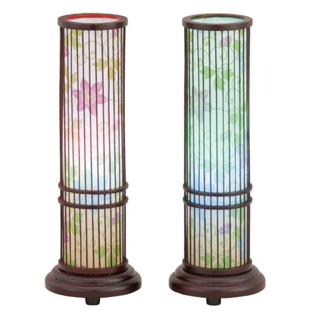 盆提灯 岐阜提灯 置き提灯 創作提灯 夢灯りクレマチス 竹製 2個セット 高さ28cm (P18)(2116) 七色LED 電気コード式 初盆 新盆 お盆