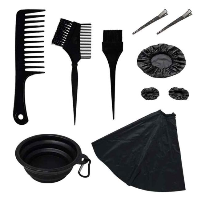 セット内容:毛染めケープ×1 ヘアキャップ×1 耳キャップ×2 ヘアダイブラシ×1 ハケ×1 幅広コーム×1 ヘアピン×2 折りたたみボウル×1