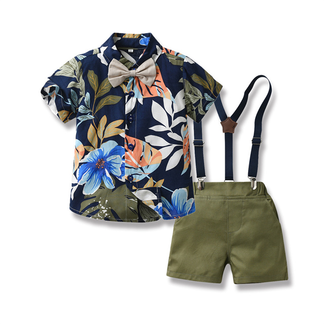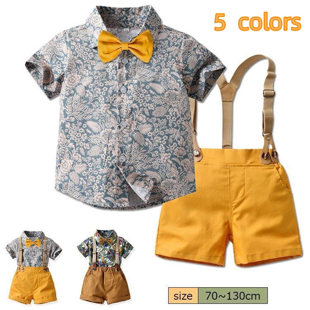 子供服 スーツ ロンパース 男児 セットアップ アロハシャツ 総柄 半袖 半パンツ キッズ 男の子 結婚式 入園式 入学式 フォーマル ハーフパンツ 卒園式 送料無料