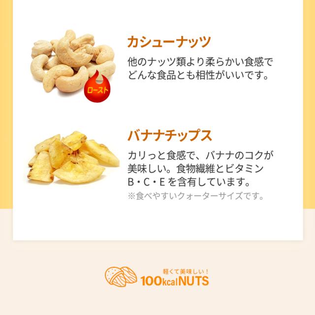 | 原材料名 | 落花生(アメリカ産)、バナナチップ(バナナ、 ココナッツ油、砂糖)、アーモンド、カシューナッツ/香料 |