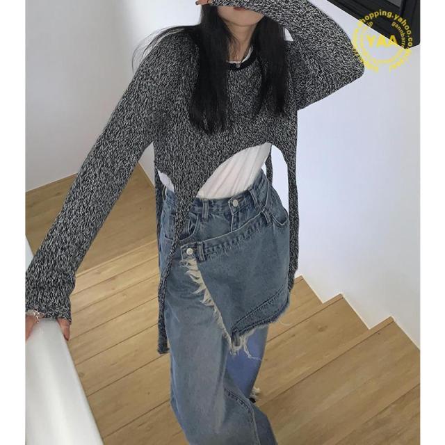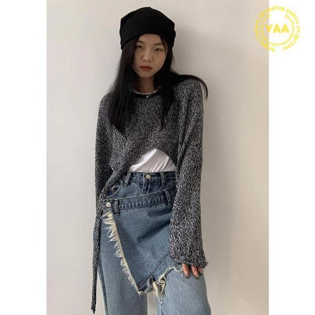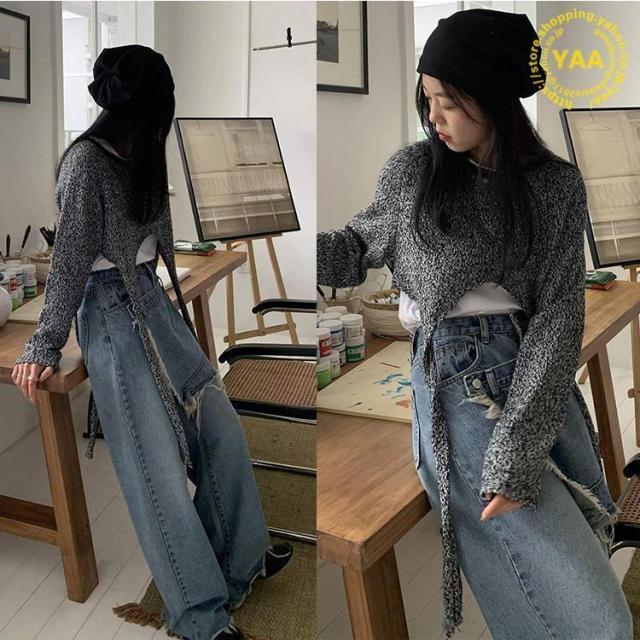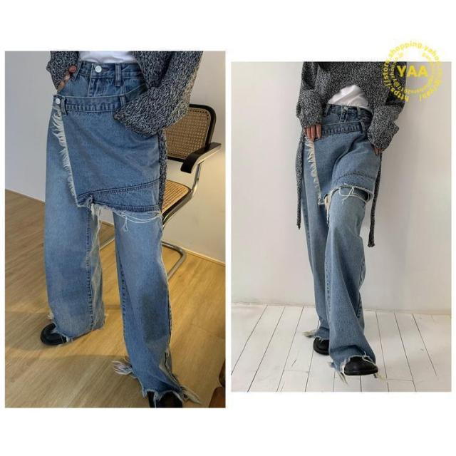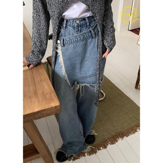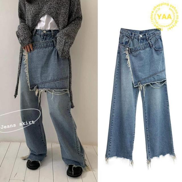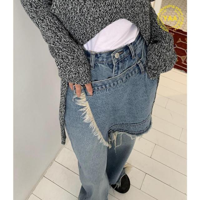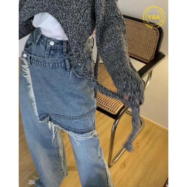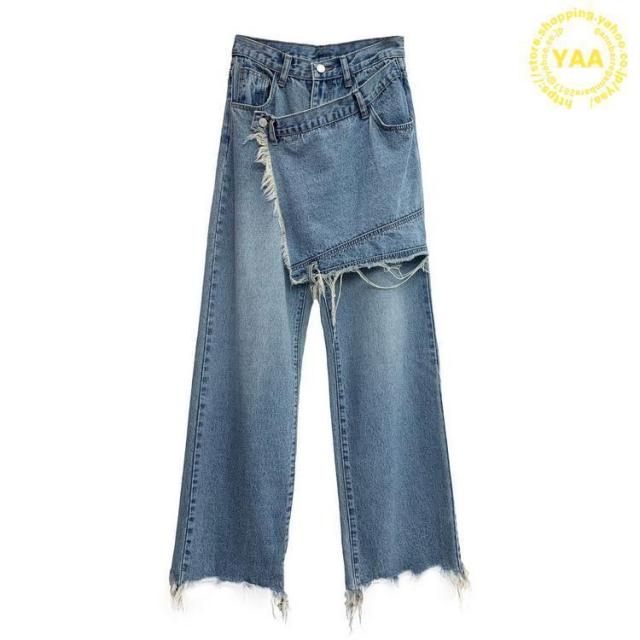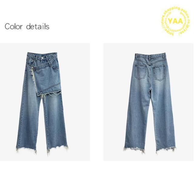 デニムパンツ レディース ジーンズ ロング丈 裾カットオフ デニム パンツ ウォッシュ ヴィンテージ 春夏