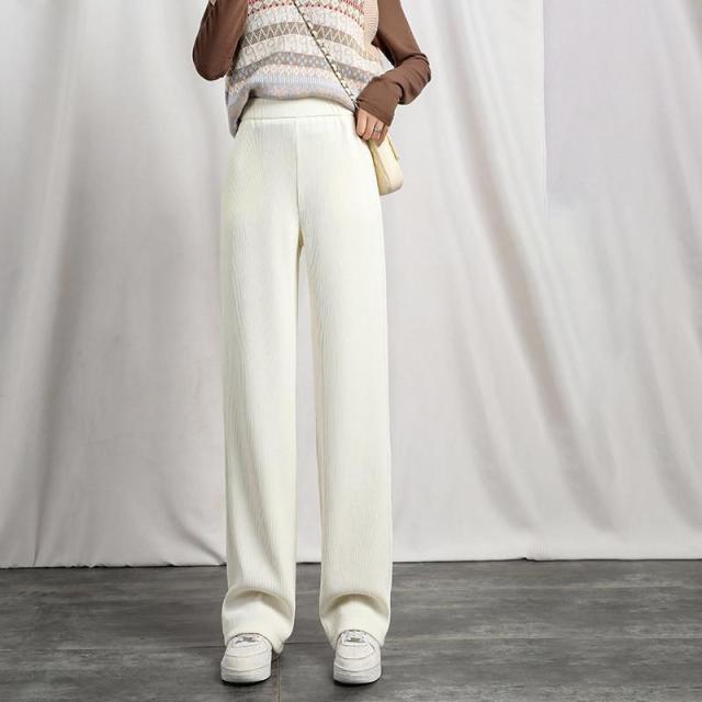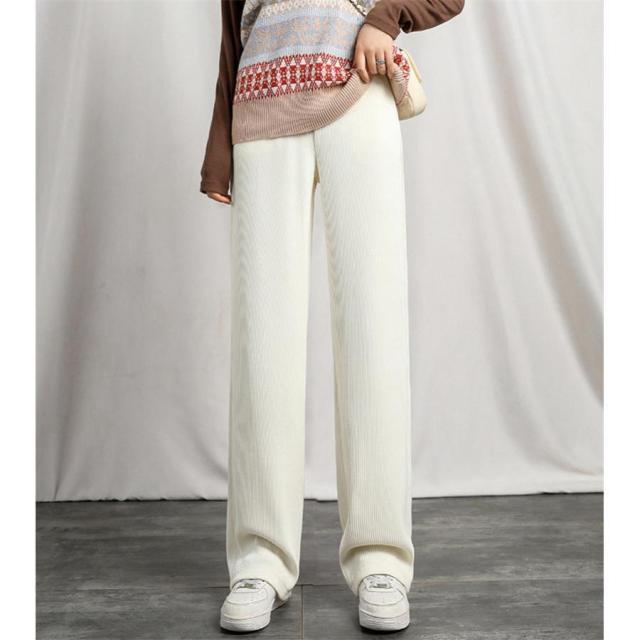 ワイドパンツ 春 夏 秋 レディース コーデュロイ ガウチョパンツ カジュアル ボトムス 楽ちん ゴム付き ストレート 履きやすい ゆったり 通勤通学 肌触り良い