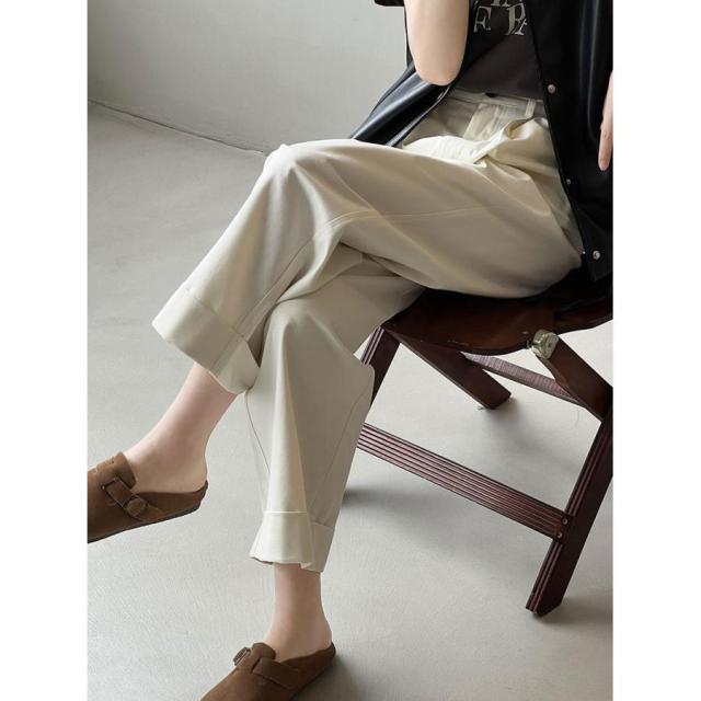 ワイドパンツ レディース オフィス パンツ ワイド ロング丈 タック ウエストゴム ロングパンツ 綿 ワイド ストレートパンツ 裾ロールアップ ボトムス タックパン
