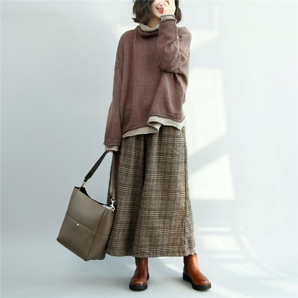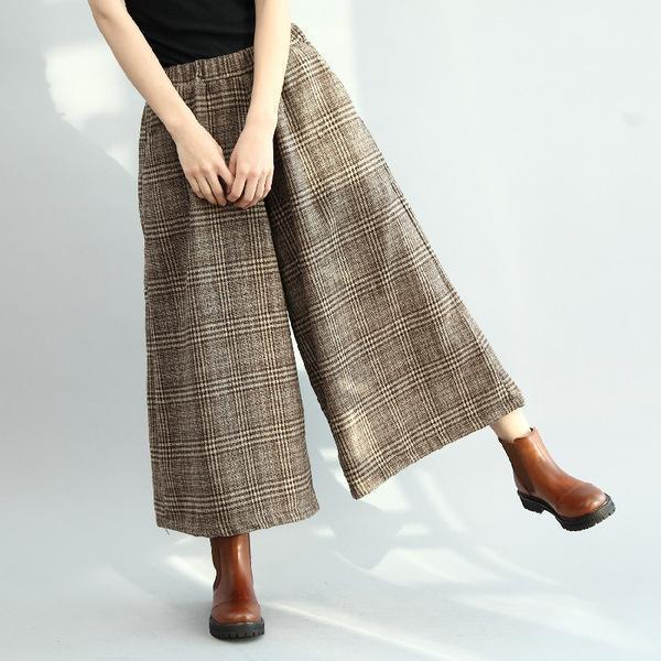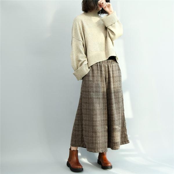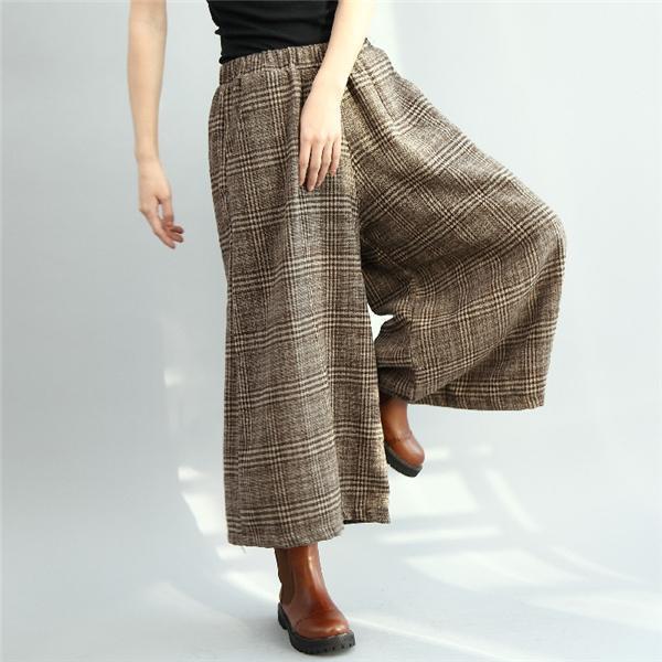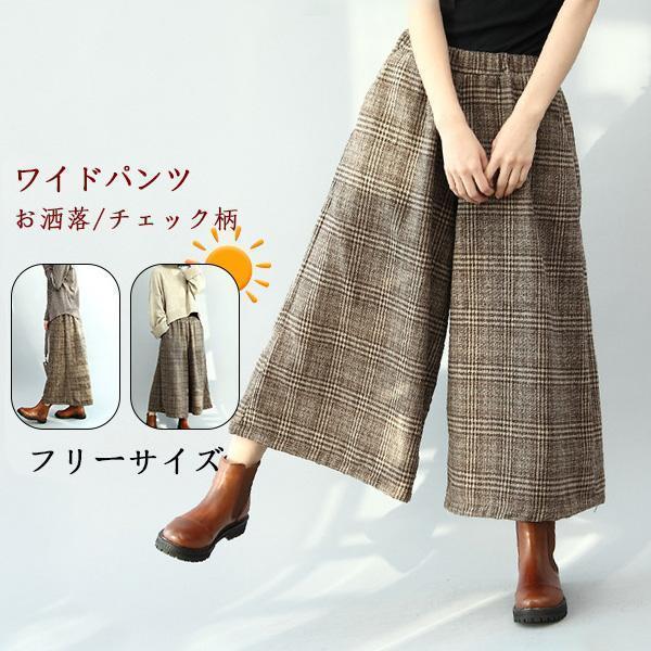 レディース 秋冬 ワイドパンツ 春 夏 秋 ガウチョパンツ パンツ 防寒 7分丈 ウエストゴム パンツ 細身 ゆったり 通勤 お洒落 チェック柄