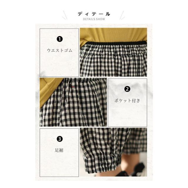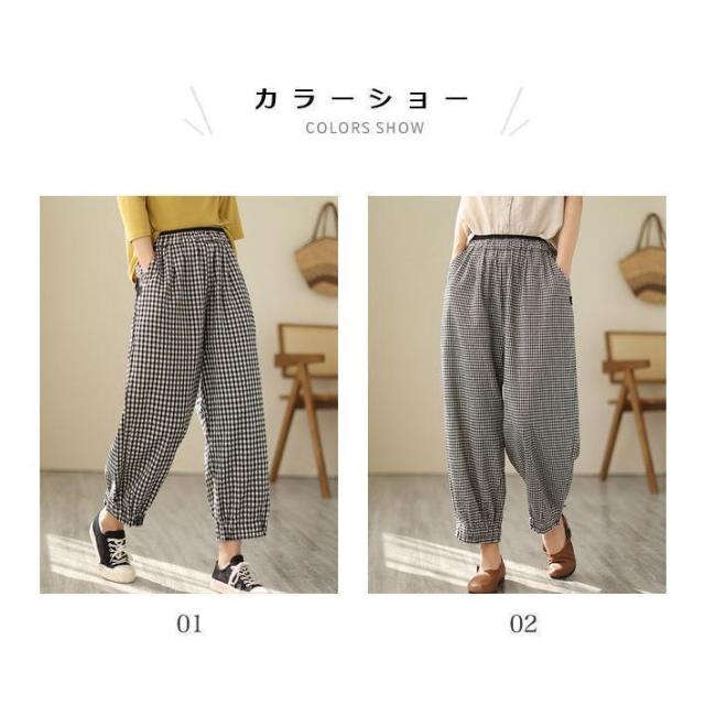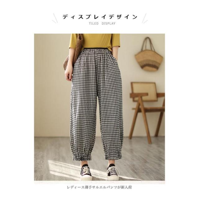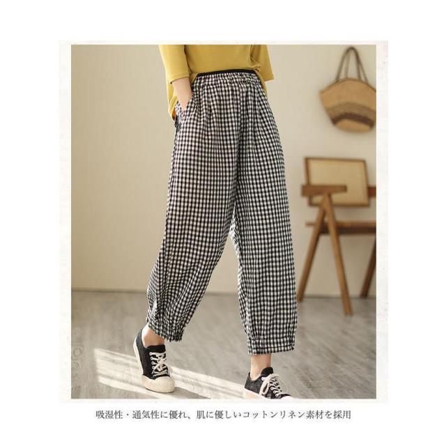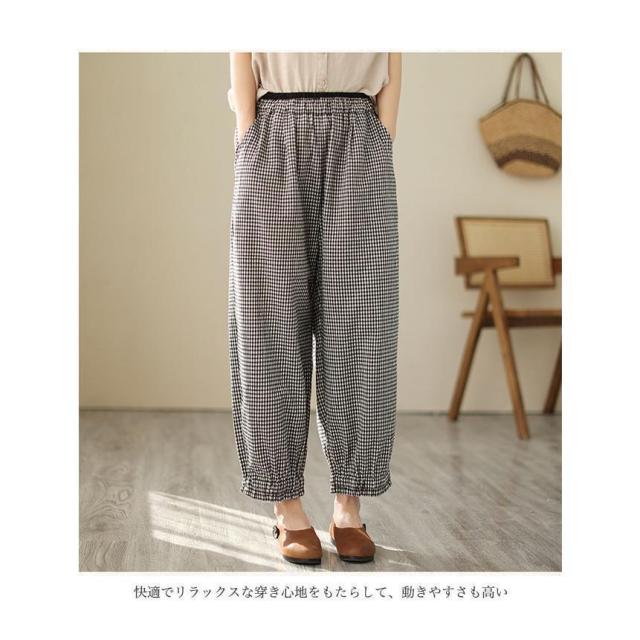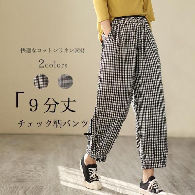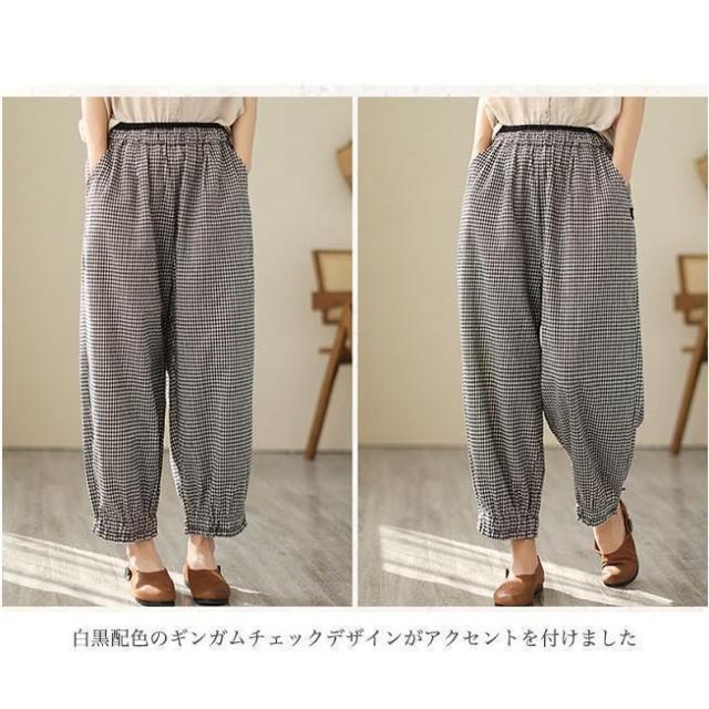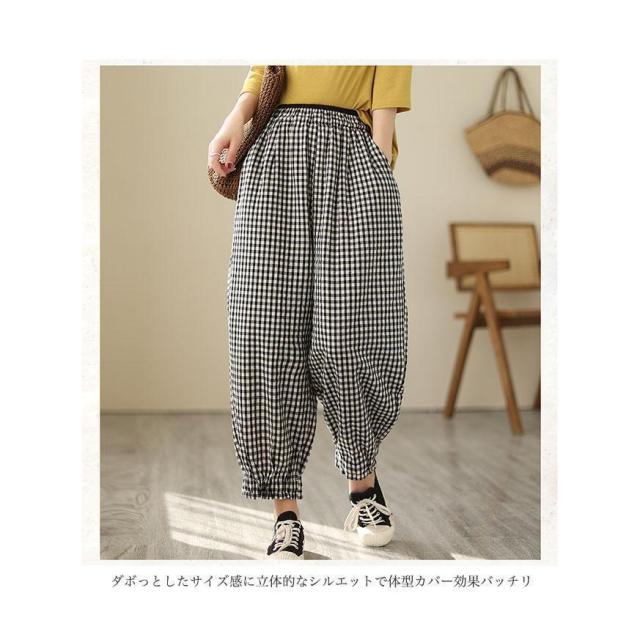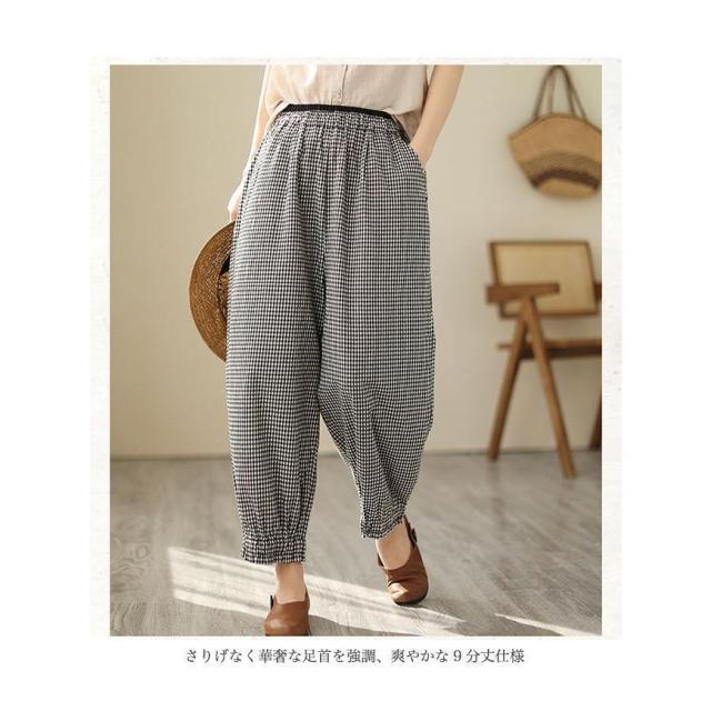 バギーパンツ コットンリネン 白黒チェック レディース リネンパンツ 薄手 ゆったり サルエルパンツ ギンガムチェック 9分丈 夏 ワイドパンツ 春 夏 秋 快適