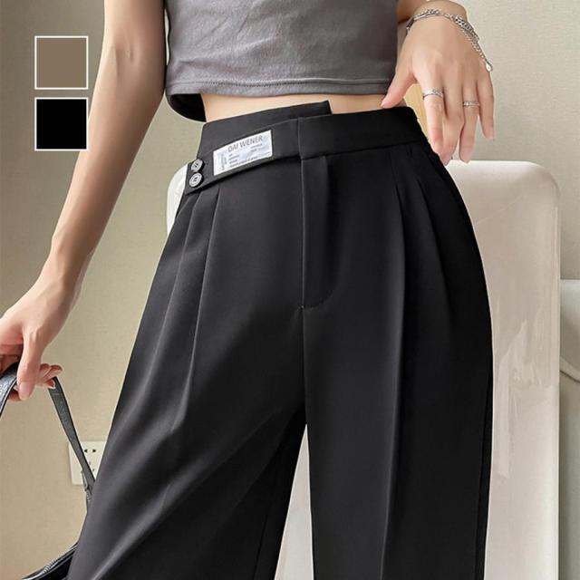 ワイドパンツ 春 夏 秋 アシンメトリー 英字ロゴ