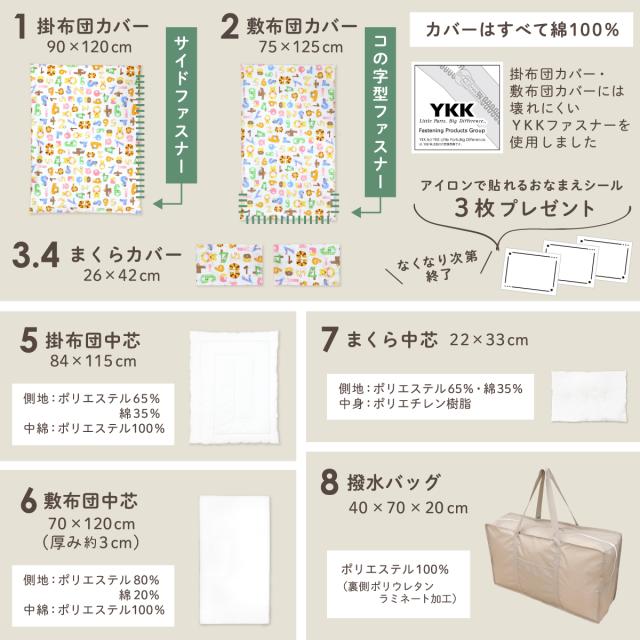 ディズニー お昼寝布団セット プー&フレンズ(ホワイト地) 充実の8点セット 綿100% 洗える敷き布団 防水バッグ 名前ワッペン ネームタグ お昼寝ふとん ファスナーカバー 保育園 コンパクト 子供 キッズ un doudou OHF