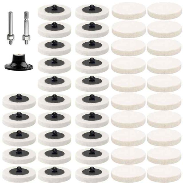 Ninkisann 45枚セット ポリッシャー バフ 50mm 羊毛 フェルトバフ 六角軸 電動ドリル バフ ポリッシャー 車 ガラス研磨用バフ (フェルトバフ 45枚セット)