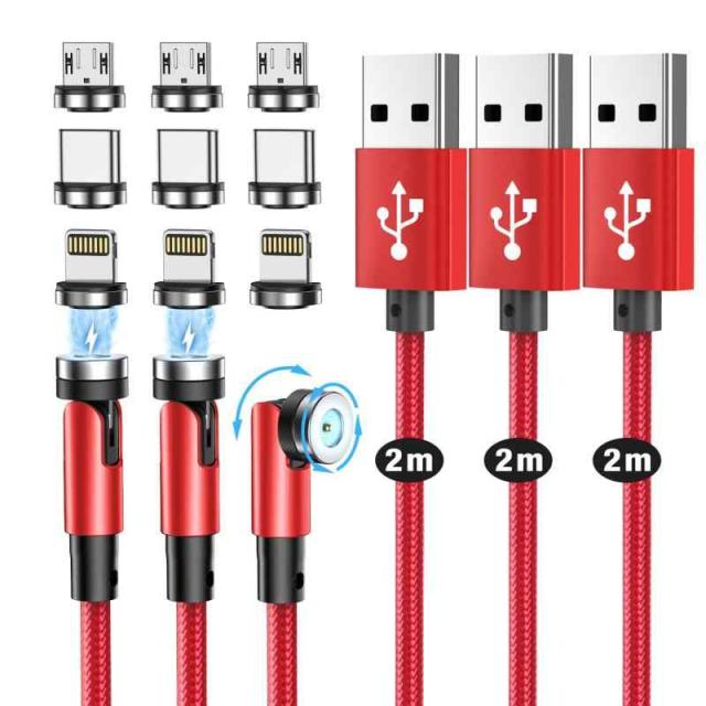 マグネット 充電ケーブル 磁気ケーブル【1M/3本セット/9個磁気端子/】360度+180度回転 マグネット式USB 充電コード ライトニング、マイクロUSB Type-C コネクタ 磁石 防塵 着脱式 For iOS & Android USB Magnetic Charging Cable LED付き (1メートル, レッド(単ピンx3セットx2))
