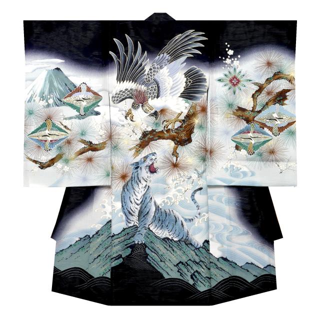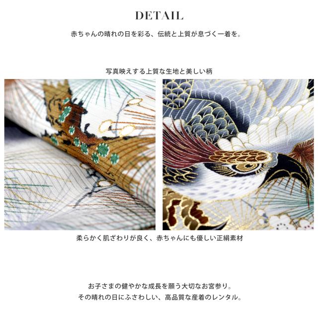絽 夏用 男児 産着 レンタル お宮参り 着物 帽子 よだれかけ セット 鮮やか 黒 ブラック 古典 No2