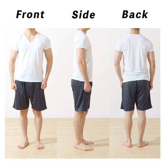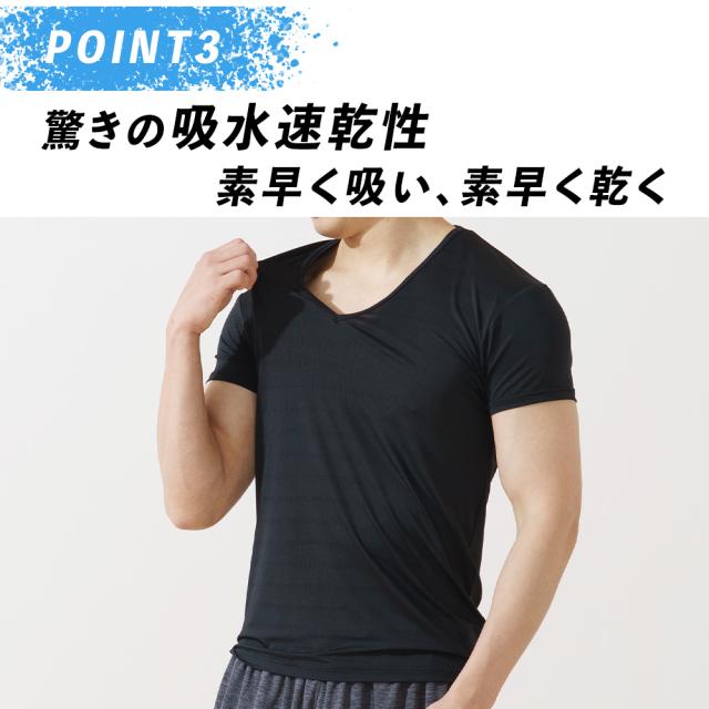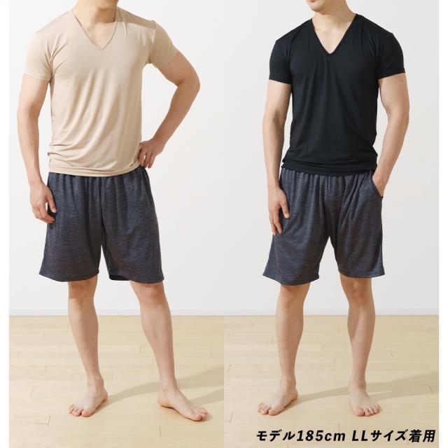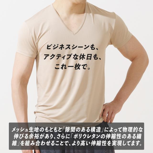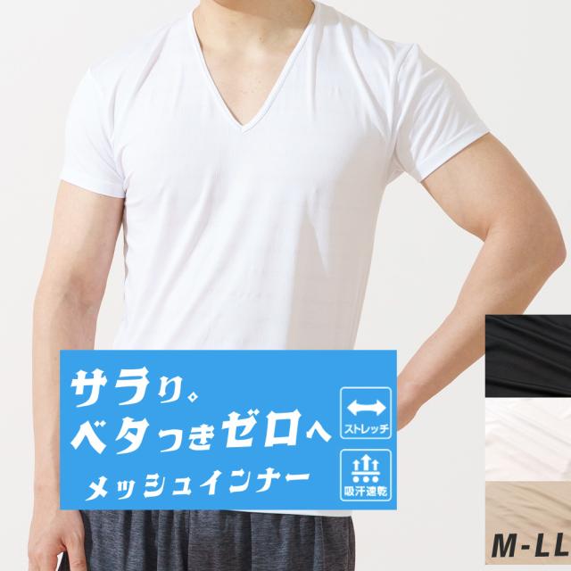 メッシュベア天2分V インナー メンズ 春夏 トップス 2分袖 吸汗速乾 爽快 ドライ感 メッシュ編み 通気性 ストレッチ 伸縮性 半袖 V首 男性 肌着 紳士 下着 25SS L1251L-E