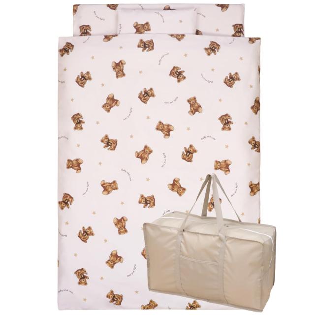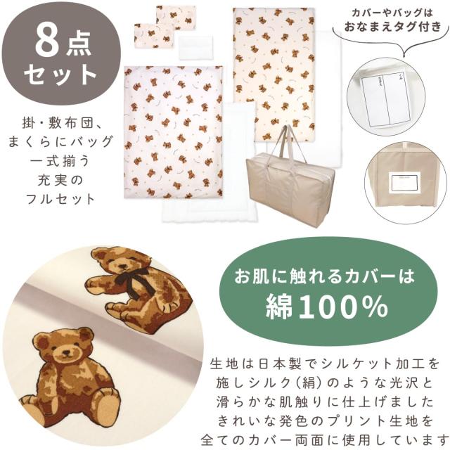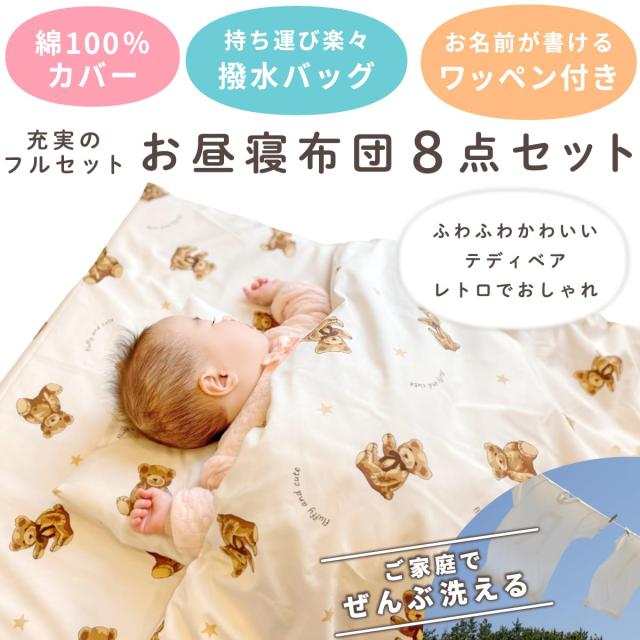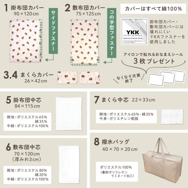 お昼寝布団セット テディベア 充実の8点セット 綿100% 洗える敷き布団 防水バッグ 名前ワッペン ネームタグ お昼寝ふとん ファスナーカバー 保育園 コンパクト 子供 キッズ un doudou OHF