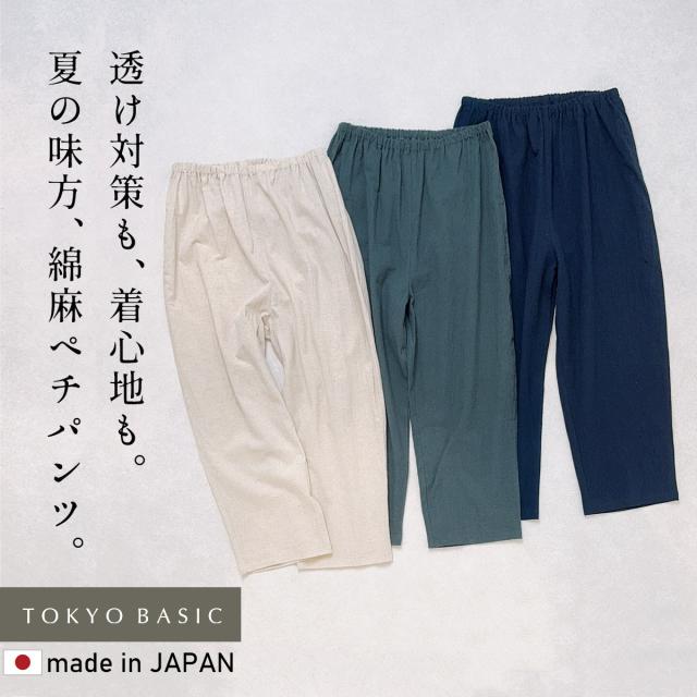 ペチパンツ ロング ワンピースの下 さらさら 夏 綿麻 リネン コットン ペチパンツ 日本製 40代 50代 60代 ファッション 吸水 速乾 涼しい 透け防止 ペチパンツ 夏用 ルームパンツ レディース ロング丈 薄手 春夏 長ズボン 夏 ゆったり 快適 ボトム イージーパンツ ルームウェア パンツ 生成 ベージュ ブルーグリーン 青 緑 ネイビー 紺