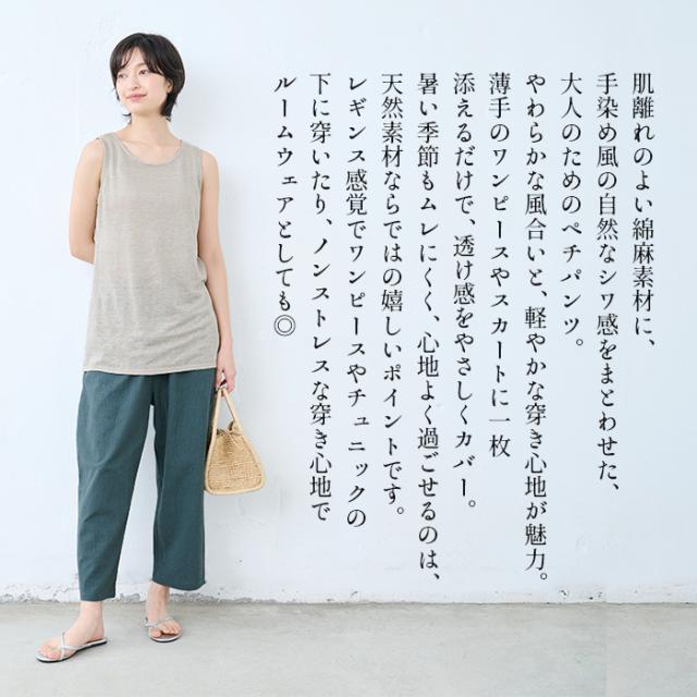 手染め風 リネンコットン ペチパンツ 日本製 / ペチパンツ ロング ワンピースの下 さらさら 夏 綿麻 40代 50代 60代 ファッション 吸水 速乾 涼しい 透け防止 ペチパンツ 夏用 ルームパンツ レディース ロング丈 薄手 春夏 長ズボン 夏 ゆったり 快適 ボトム