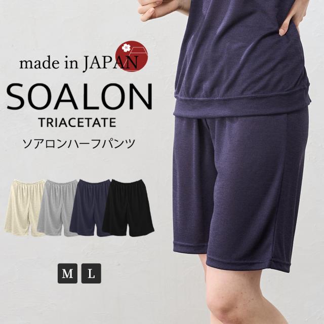 日本製 ソアロン ハーフパンツ トリアセテート ファッション レディース 女性 春 夏 カジュアル さらさら 薄手 女性 カジュアル 速乾 ベーシックカラー ベージュ グレー ネイビー ブラック 紺 黒 40代 50代 60代