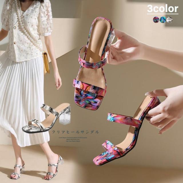 足元に旬の抜け感を出してくれるクリアヒールサンダル