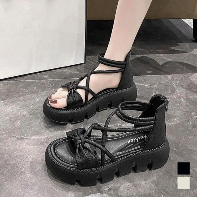 厚底サンダル きれいめカジュアル バックファスナー 歩きやすいサマーシューズ 美脚疲れない コンフォートサンダル 韓国夏