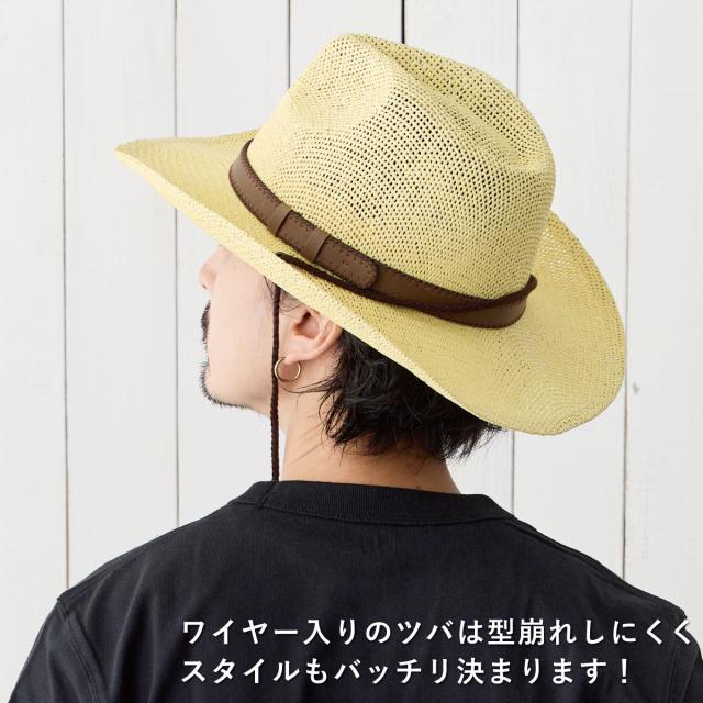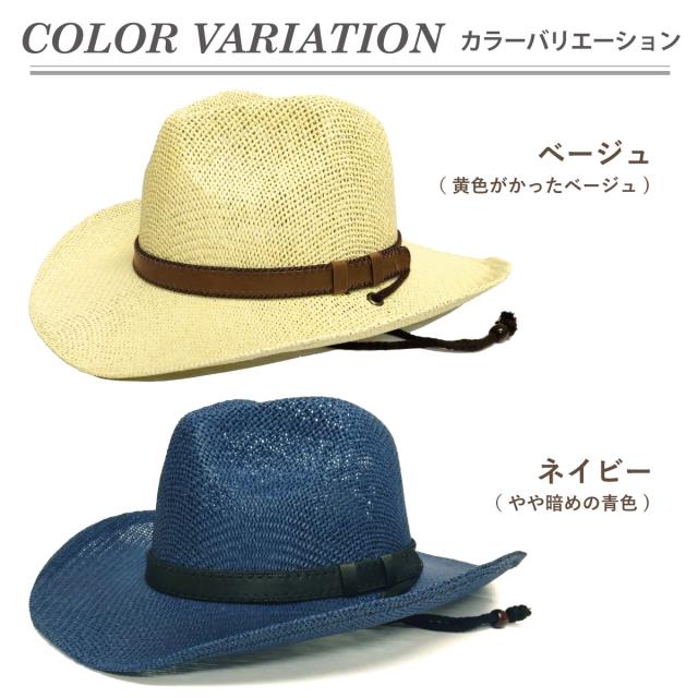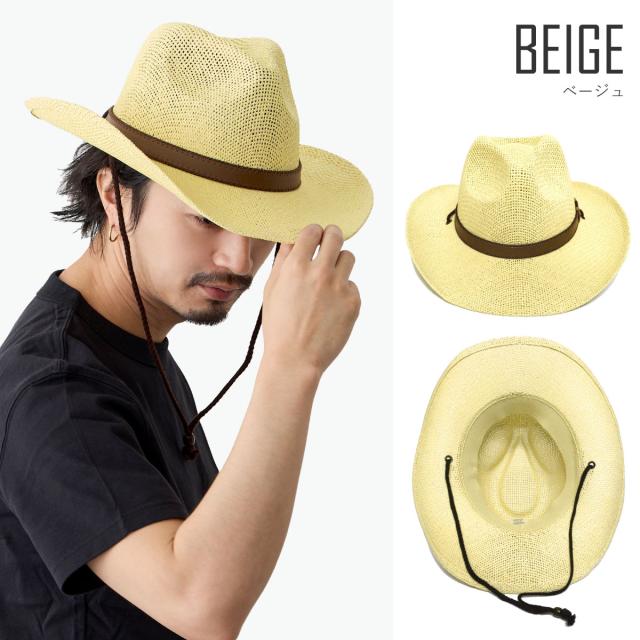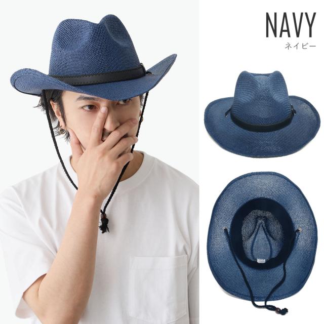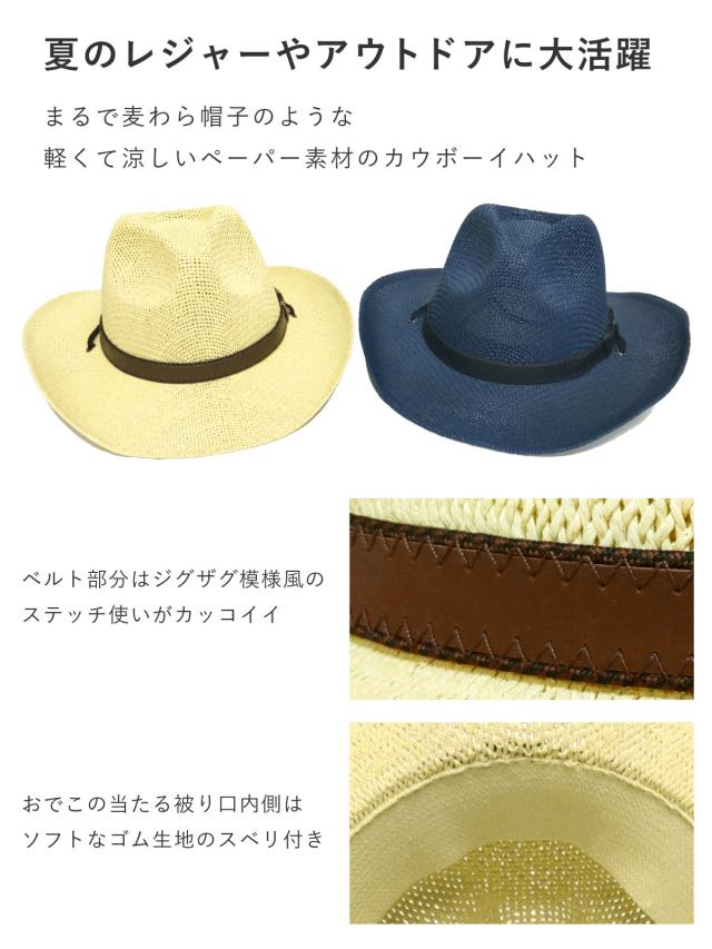 メッシュ編み カウボーイ ハット 帽子 軽くて涼しい ペーパー素材 レザー調ベルト 58cm 紐つき hat-1548 テンガロンハット 春夏 メンズ UV アウトドア つば広 軽い カッコいい 旅行 リゾート 日焼け防止 お洒落 父の日 プレゼント