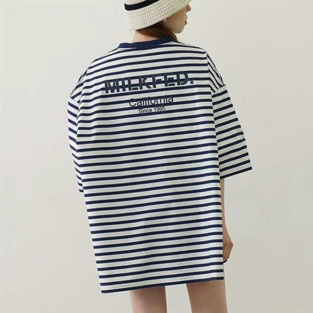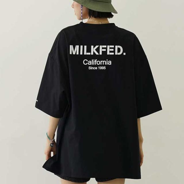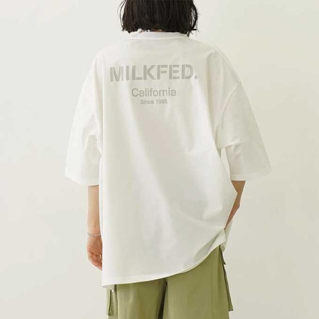 フロントは控えめに、MILKFED.のロゴ刺繍をシンプルに、背面に施したプリントは微配色にし、大人の方も着やすいデザインになっています。
