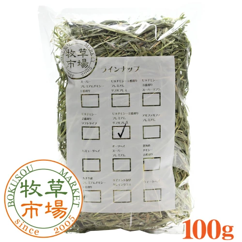 牧草市場 USチモシー 2番刈り 牧草 ダブルプレス ★ お試しサイズ 100g (プレミアム) マペット うさぎ モルモット チモシー ウサギ フード 小動物 チンチラ デグー 敷材 産床 お試し