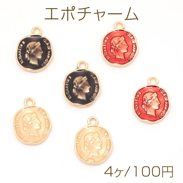 エポチャーム 合金製 横顔 人物 肖像画 不規則ラウンド カメオ風チャーム メタルチャーム 約11×15mm(4ヶ)
