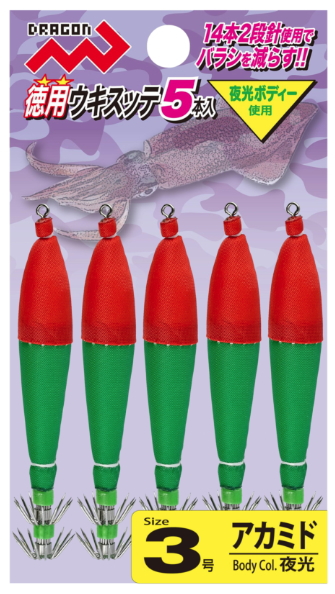 マルシン漁具 徳用ウキスッテ5本入 アカミド 3号 / イカメタル用スッテ メール便可