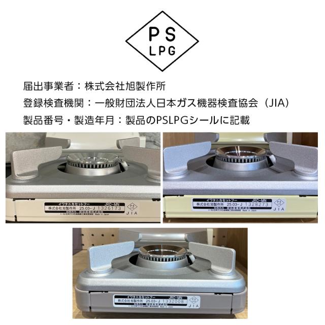PSマークの種別:種別/PSLPG 届出事業者名/株式会社旭製作所 登録機関名称/日本ガス石油機器検査協会