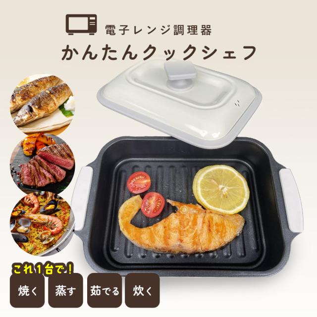 電子レンジ用調理器 かんたんクックシェフ レシピ付き 簡単操作 DL-YU454 デジタルランド 角型 電子レンジ 調理器 レンジで簡単 レンジ クック グリルパン 簡単 レンジで焼ける 焼く 蒸す 煮る 茹でる 炒める 炊く レンジで焼き魚 魚焼き 目玉焼き