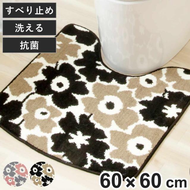 トイレマット SELECT JUSTFIT アナーサトイレマット 60×60cm ( トイレ マット 足元マット 北欧 抗菌 すべり止め 洗える 花柄 おしゃれ トイレタリー 滑り止め 洗濯可 60×60 アイボリー グレージュ かわいい )