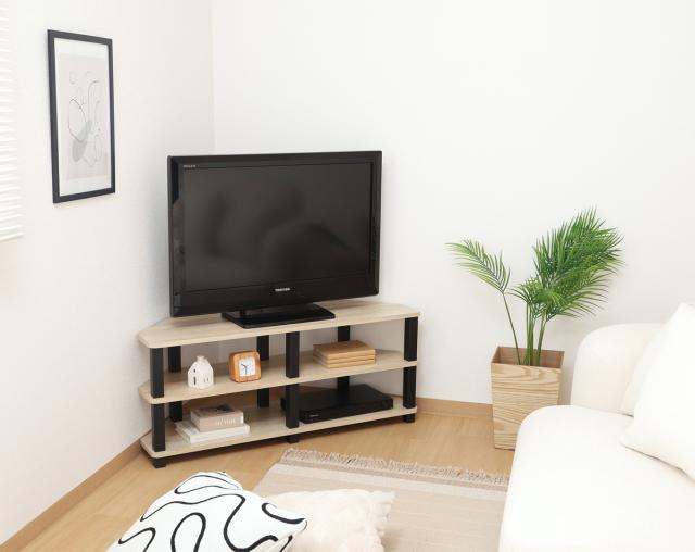 工具不要で組み立て簡単 コーナーに収まるテレビ台